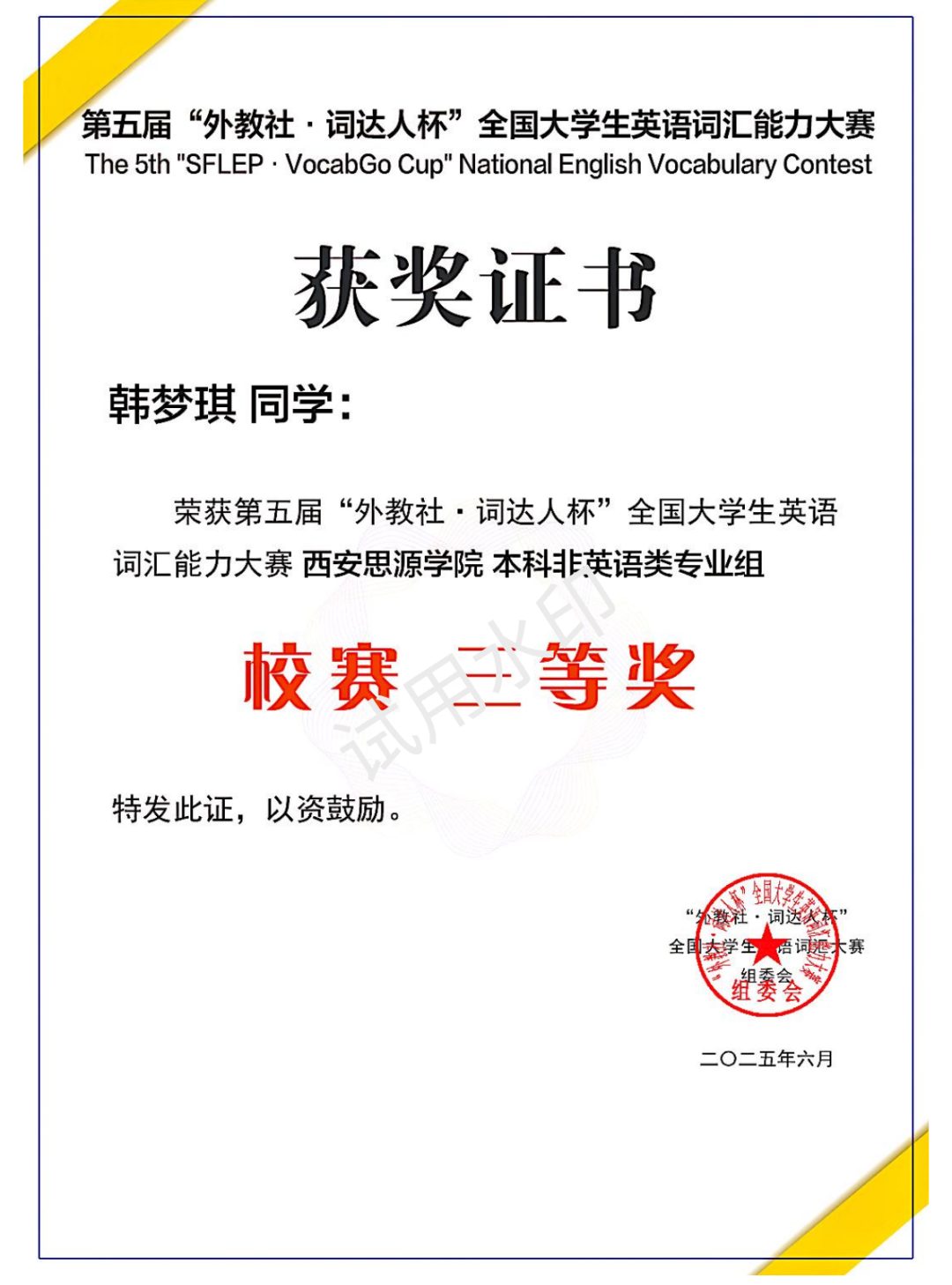 2025年6月全国大学生英语词汇能力大赛校赛三等奖