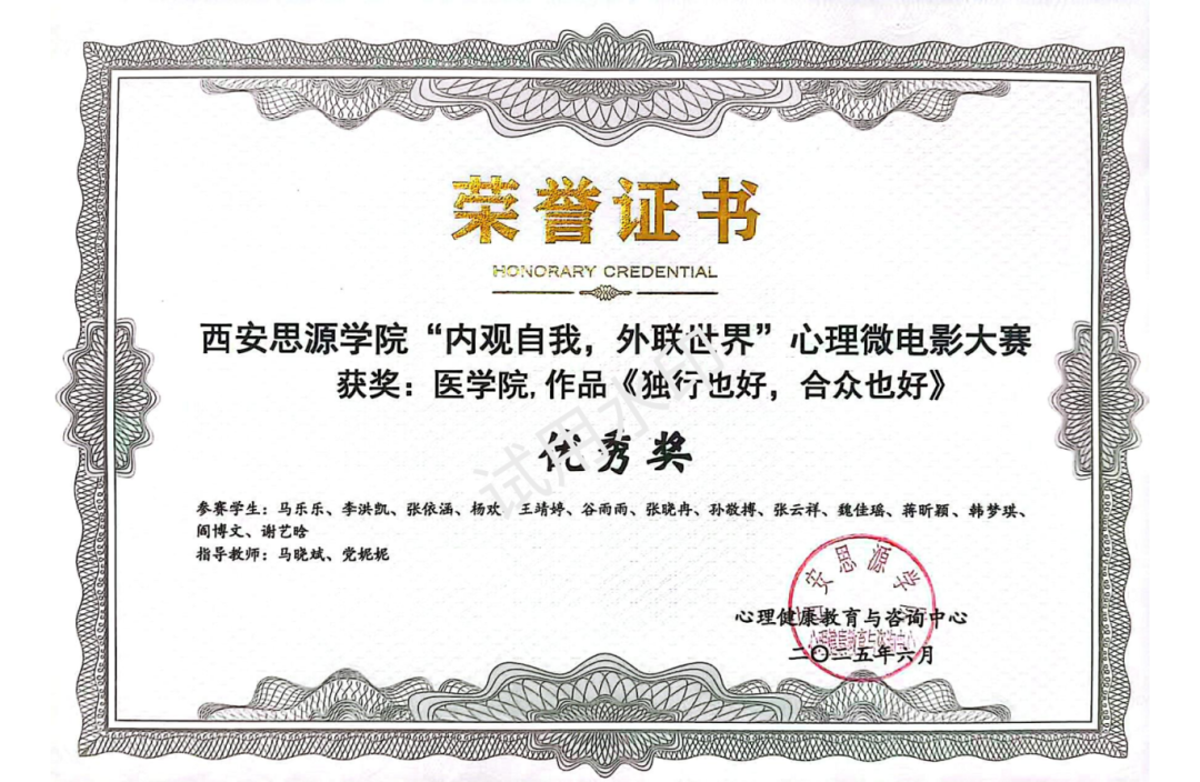 在参与《高盐饮食对阿尔茨海默症小鼠肠道菌群影响研究》的日子里,我在显微镜下观察菌群的变化,在数据里探寻生命的密码,忽然懂得护理不只是临床的守护,更是科研的探索——那些在实验室里熬过的时光,终将成为未来守护患者的底气。在“外教社?词达人杯”的赛场上,我用英语词汇搭建沟通的桥梁;在手语操《指尖跃动的晨光》里,我用无声的手势传递爱的温度;在心理微电影《独行也好,合众也好》的创作中,我用镜头捕捉心灵的微光。这些经历让我明白,护理不仅是科学,更是人文的艺术。