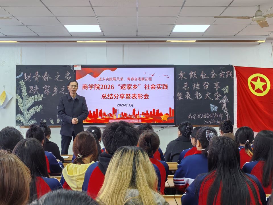 为了让这段宝贵的实践经历真正沉淀为成长力量,商学院特意举办了寒假“返家乡”社会实践总结表彰分享会。在会上,团委书记董雪松围绕2026年寒假社会实践的整体开展情况进行了细致梳理,从实践内容、服务岗位到同学们的收获与成长逐一总结,生动展现了商学院学子在实践中坚守初心、在实干中不断成长的良好风貌。