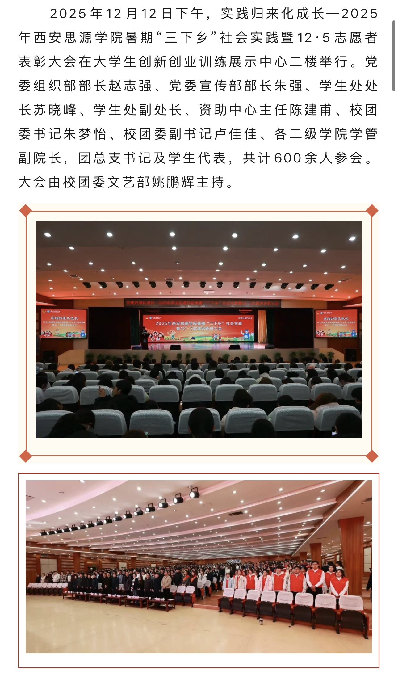 实践归来化成长|2025年西安思源学院暑期“三下乡”社会实践暨12·5志愿者表彰大会圆满举行