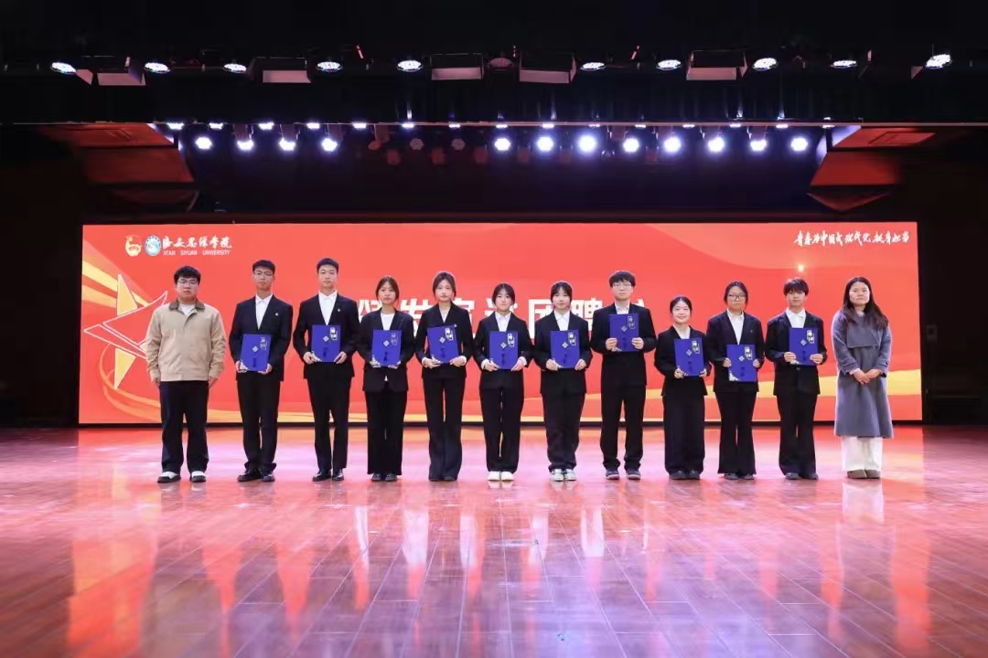 仪式现场还举行了“青语者”青年宣讲团聘书颁发仪式。城建学院团总支书记张婷、电信学院团总支书记师光泽为宣讲团成员颁发聘书。本次受聘的25名成员经公开选拔、严格考核产生,后期他们将立足校园、面向青年,用青年话语讲好党的理论、讲透时代精神、讲活青春故事。