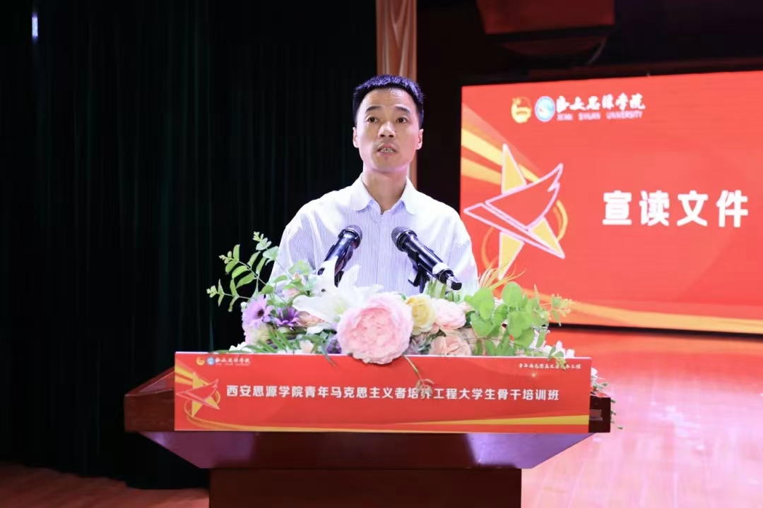 为深入实施青年马克思主义者培养工程,加强青年思想政治引领,锻造高素质学生骨干队伍,3月23日,西安思源学院“青年马克思主义者培养工程”第二十九期大学生骨干培训班结业暨第三十期大学生骨干培训班开班仪式在大学生创新创业训练展示中心二楼举行。校团委全体专职团干部、部分二级学院团组织书记、第二十九期优秀学员代表及第三十期全体青马学员参加本次活动。
