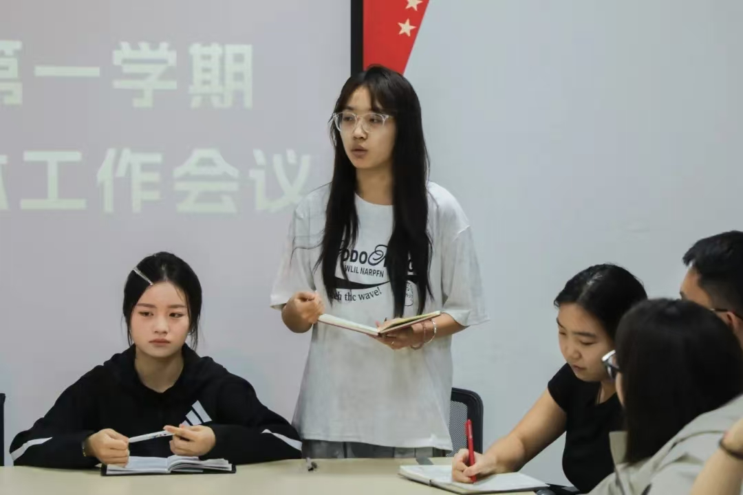 随后,学生干部代表李美屏、刘语欣结合自身实践经验,围绕新学期工作目标,系统阐述了以强化思想引领、优化部门协同、深化品牌活动为重点的工作思路,并就如何在实际工作中有效落实提出了明确的方法与路径。