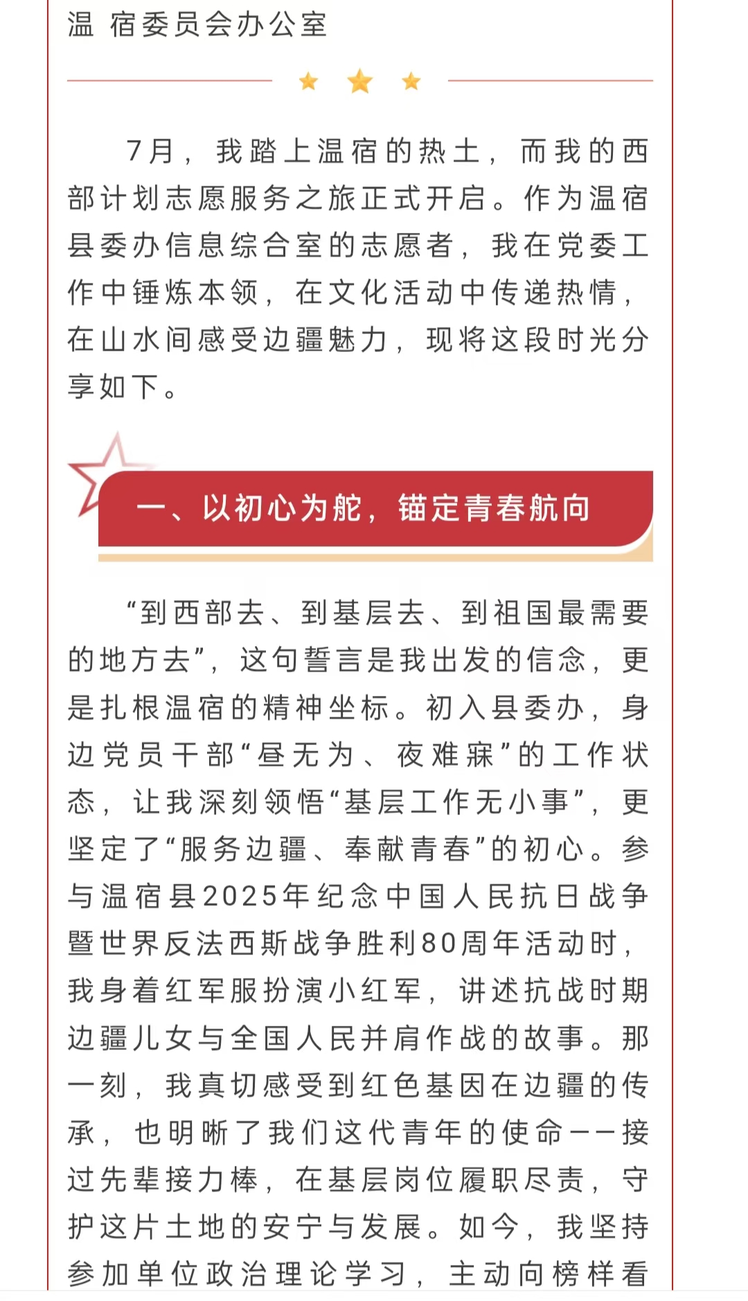 西部计划初体验(一)|2025年西部计划志愿者工作纪实来啦