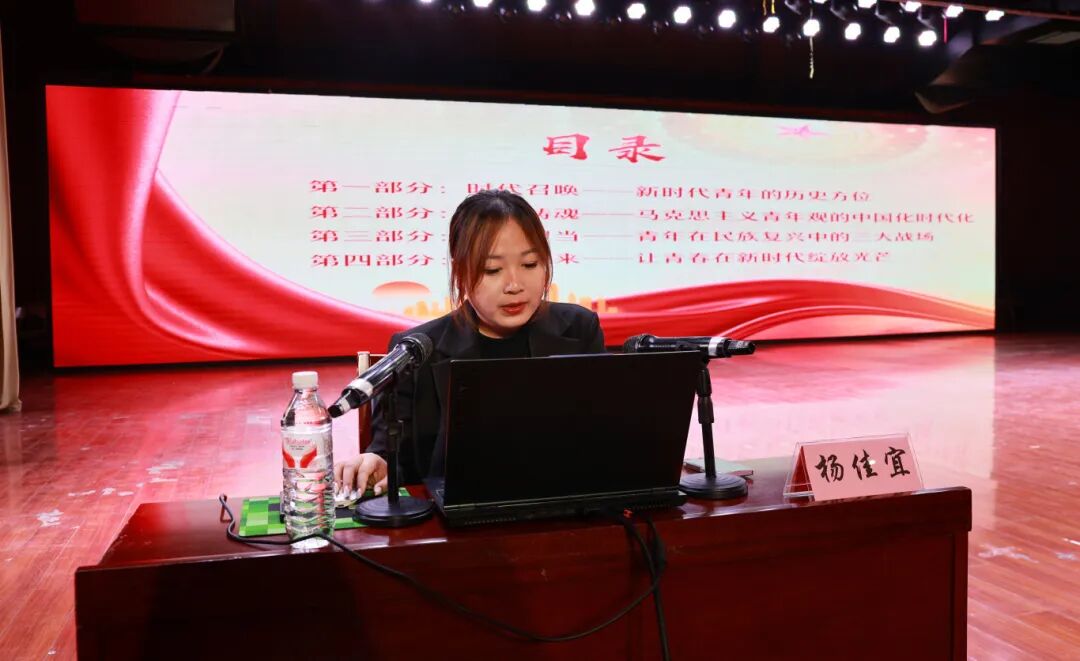 为深入学习贯彻落实党的二十大、二十届二中、三中、四中全会精神,加强团员青年的思想政治教育,强化对基层团干部的政治锻造与能力淬炼,引导广大团员青年坚定理想信念,2025年11月12日,文学院分团委书记杨佳宜老师为我校“青马工程”学员作了题为《青春心向党 建功新时代——青年马克思主义者的责任与担当》的专题授课。