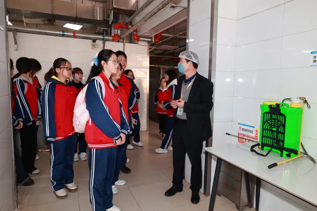 在食管理处老师与校团委生活部工作人员的带领下,学生代表们有序参观了食材储存库房、清洗切配区、烹饪操作间、餐品留样柜、餐具消毒间等关键区域。参观过程中,学生代表们不时驻足询问,工作人员耐心解答每一个疑问,后厨不再是“神秘地带”,而是变成了一堂生动鲜活的“食品安全实践课”。通过实地探访和深入交流,同学们不仅对学校食堂从食材采购、储存、加工到餐品上桌的全流程有了清晰而全面的认识,更真切体会到学校在食品安全管理上的“绣花功夫”,每一个细节都彰显着对学生饮食安全的高度负责,也让大家对校园餐饮的信任感持续升温。