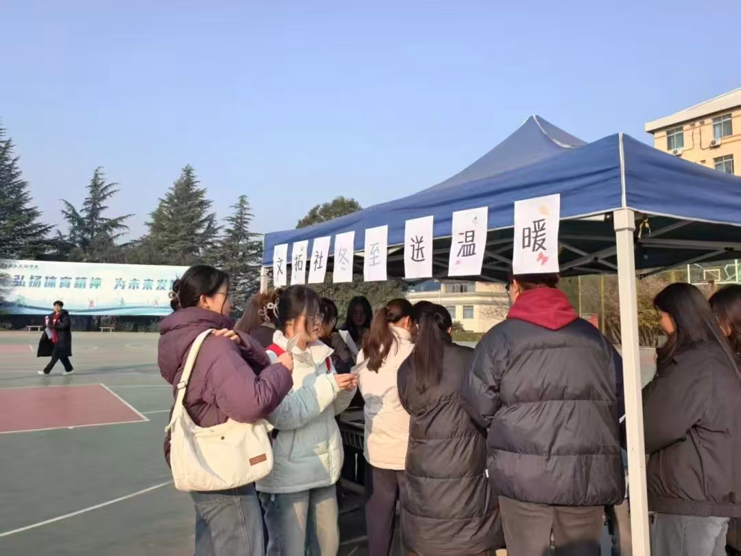2025年12月18日,文拓社“翰墨书冬至·文脉传古今”主题活动在篮球场温情开场。师生们陆续驻足,欣然参与,以笔墨为媒、民俗为桥,沉浸式体验传统节气的文化韵味,令冬至之日更添一份融通古今的温暖。