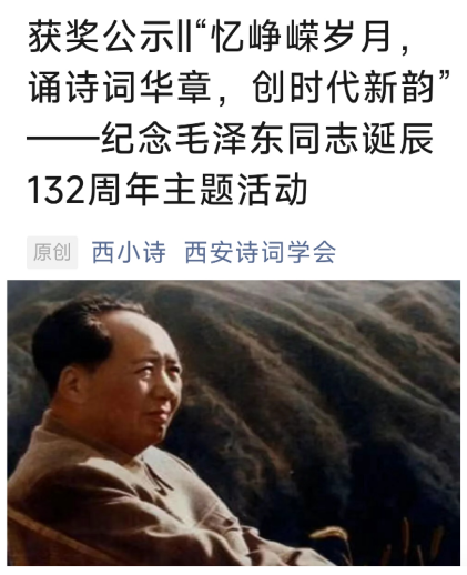 西安诗词学会公布的获奖名单界面