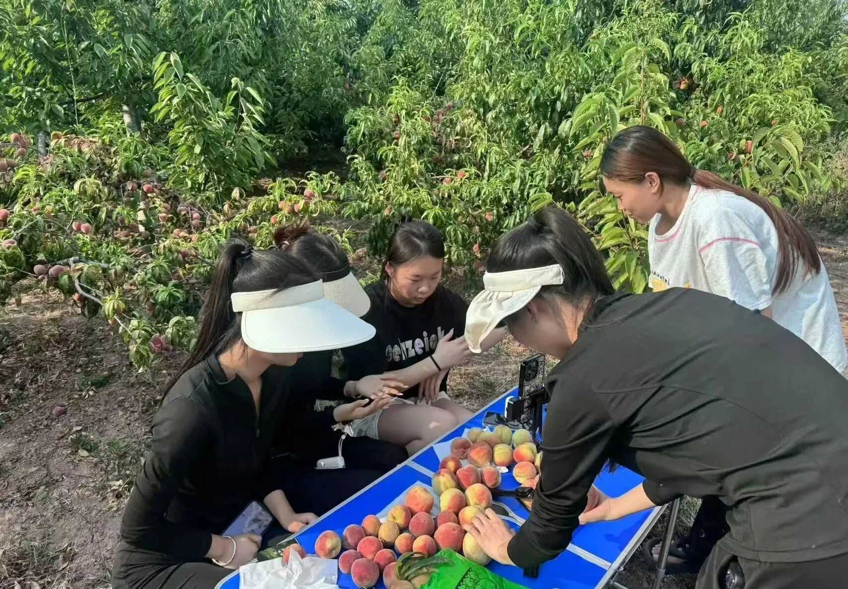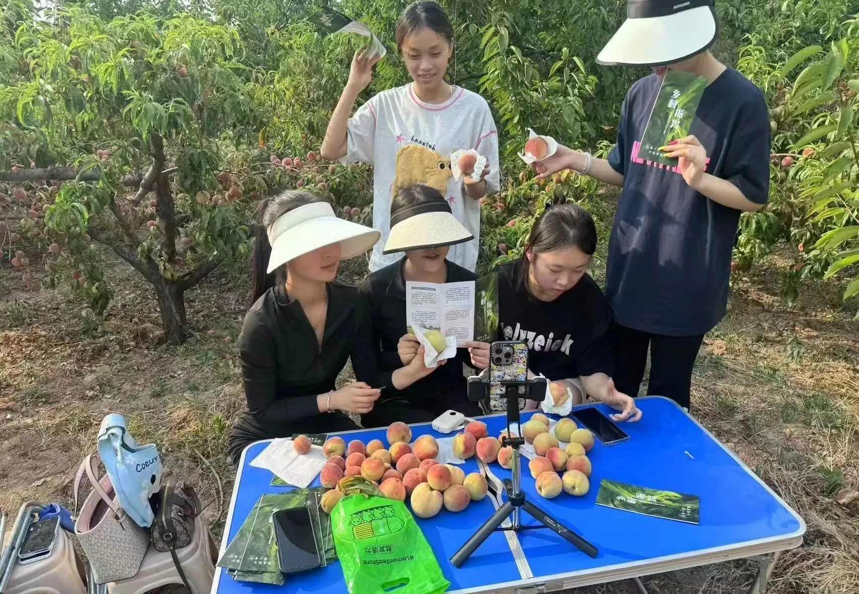 直播中,实践团成员们不仅详细介绍了桃子的品种、口感和种植过程,还带着网友“云游”桃园:镜头扫过郁郁葱葱的桃林,记录下果农采摘的忙碌身影,展示了当地原生态的种植环境。“这些桃子不打农药,都是果农用传统方式除草、施肥,保证天然健康。”来自舞蹈表演专业的同学一边展示刚摘下的桃子,一边向网友讲述背后的故事,“我们昨天跟着果农伯伯学摘桃,才知道一颗桃子从开花到结果要经历多少心血,希望大家能尝到这份来自乡村的甜蜜。”