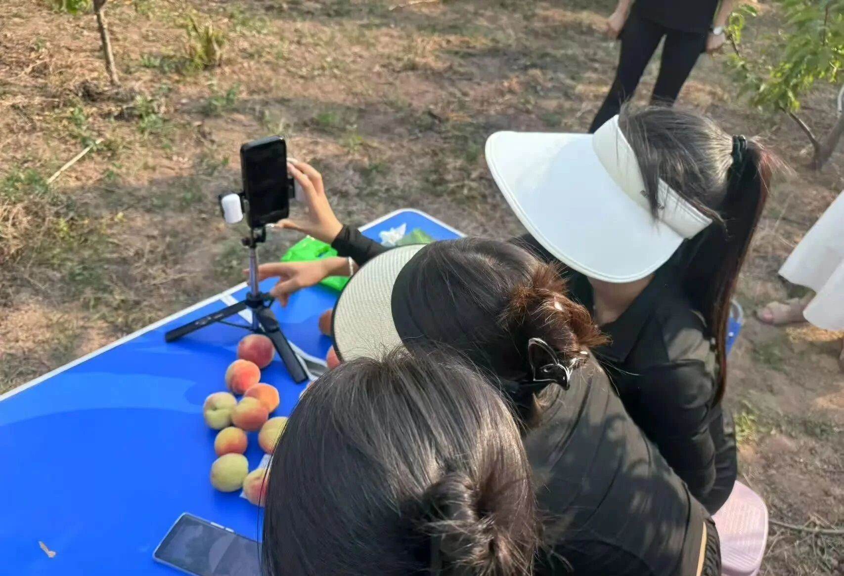 “家人们看过来!这是刚从树上摘下来的桃,咬一口汁水直流,甜到心坎里!”上午九点,实践团成员手持手机,站在挂满果实的桃树下,热情地向镜头前的网友介绍。镜头里,饱满圆润的桃子缀满枝头,翠绿的叶片间透着诱人的粉红,实践团成员们穿梭在桃园中,有的负责采摘、有的展示果实、有的回复弹幕,分工明确,配合默契。