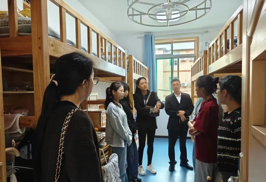 初秋的校园暖意融融,刚刚入住宿舍的2025级新生脸上还带着初来乍到的青涩与期待。为拉近与新生的距离、了解他们的入住情况与需求,9月3日晚,舞蹈艺术学院院长刘少敏,学管副院长张伟明,辅导员李兆蕾、仝蕊、马原组成走访小组,逐一走进新生宿舍,用亲切的交谈与细致的关怀,开启了师生间的第一次“零距离”对话。