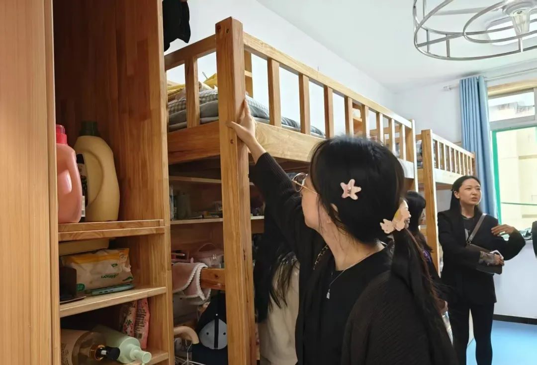 “第一次离开家住宿舍,会不会想家呀?”在女生宿舍,学院各班辅导员笑着与新生交流,顺手帮同学整理了一下挂在床边的舞蹈服,“宿舍就是你们在学校的‘小家’,有问题随时找辅导员或宿管老师,别客气。”看到有新生正在摆放舞蹈鞋,刘院长还贴心提醒:“练完舞记得把鞋通风晾晒,保护好脚踝,明天专业课才能有好状态。”