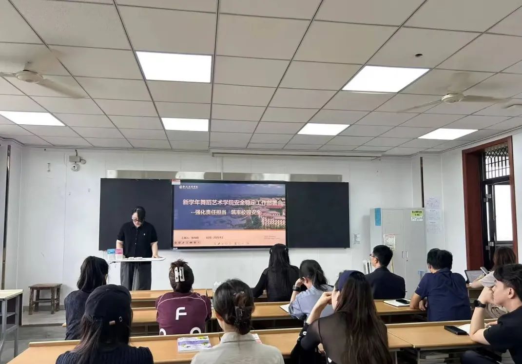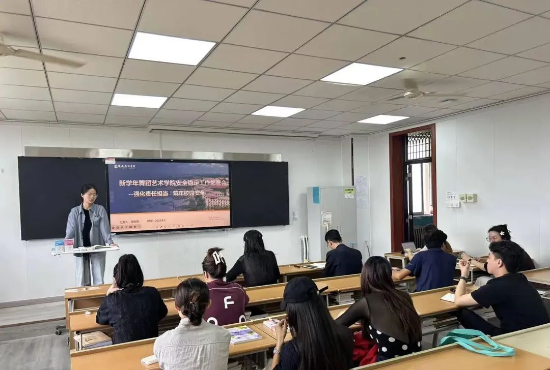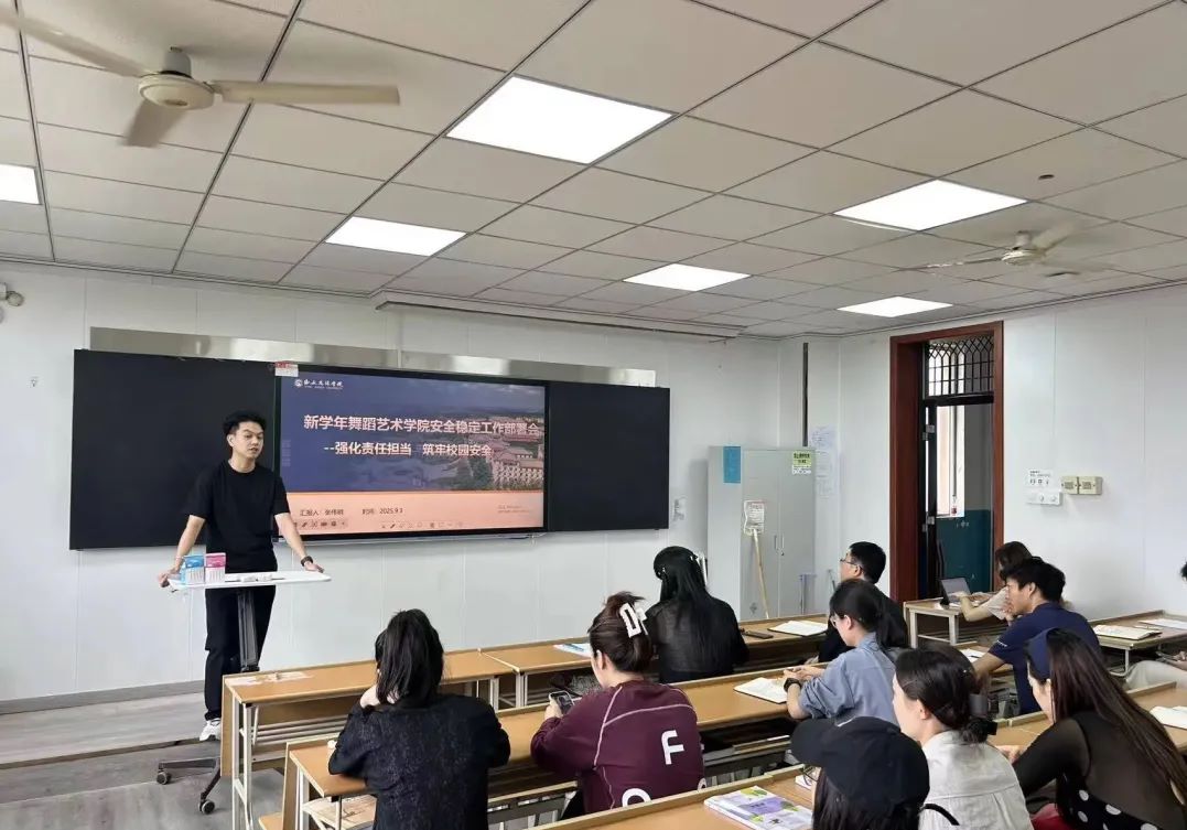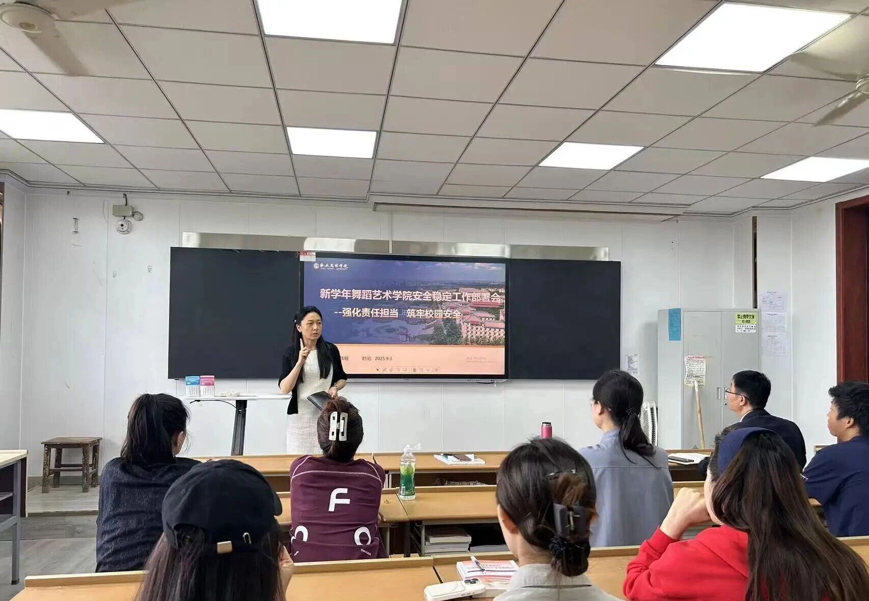 为切实筑牢新学期校园安全防线,引导全院师生树立“安全第一”的思想意识,根据学校2025年秋季新学期安全稳定工作会议精神,舞蹈艺术学院于2025年9月2日组织召开秋季新学期安全稳定专题会议。院长刘少敏、支部书记、学管副院长张伟明、全体辅导员和专业教师参会,会议由教学秘书王紫怡主持。