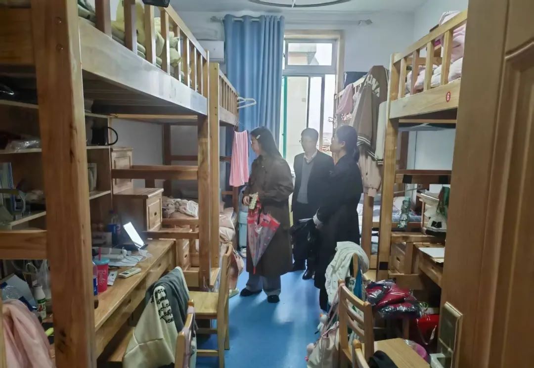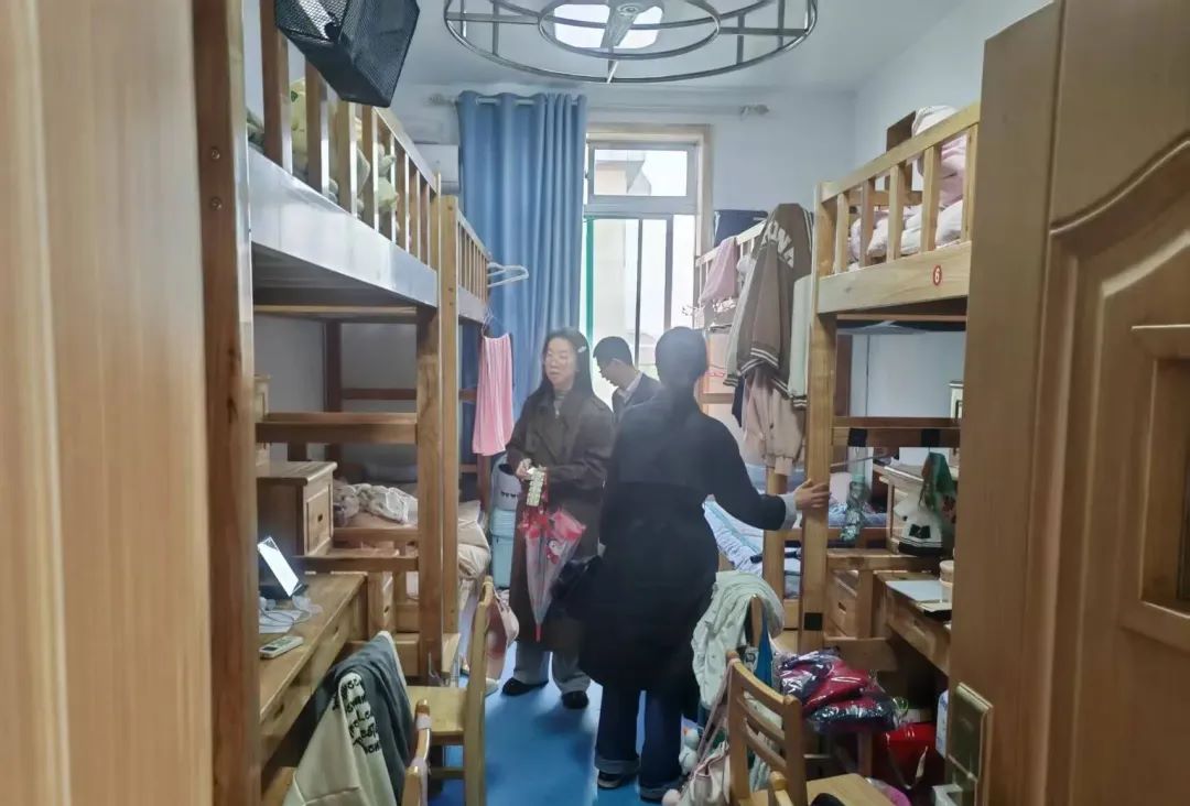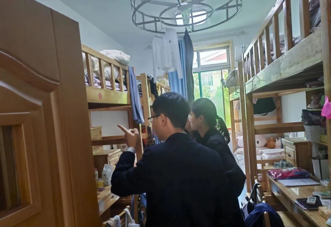 走访过程中,老师们重点关注学生思想动态与心理状态。每到一间宿舍,都与学生亲切交谈,详细询问学习进度、生活困难及对校园管理的建议,倾听大家在适应大学生活中的困惑,鼓励同学们树立积极心态,遇到问题及时向老师反馈,同时引导大家树立集体意识,在宿舍营造互帮互助的良好氛围。