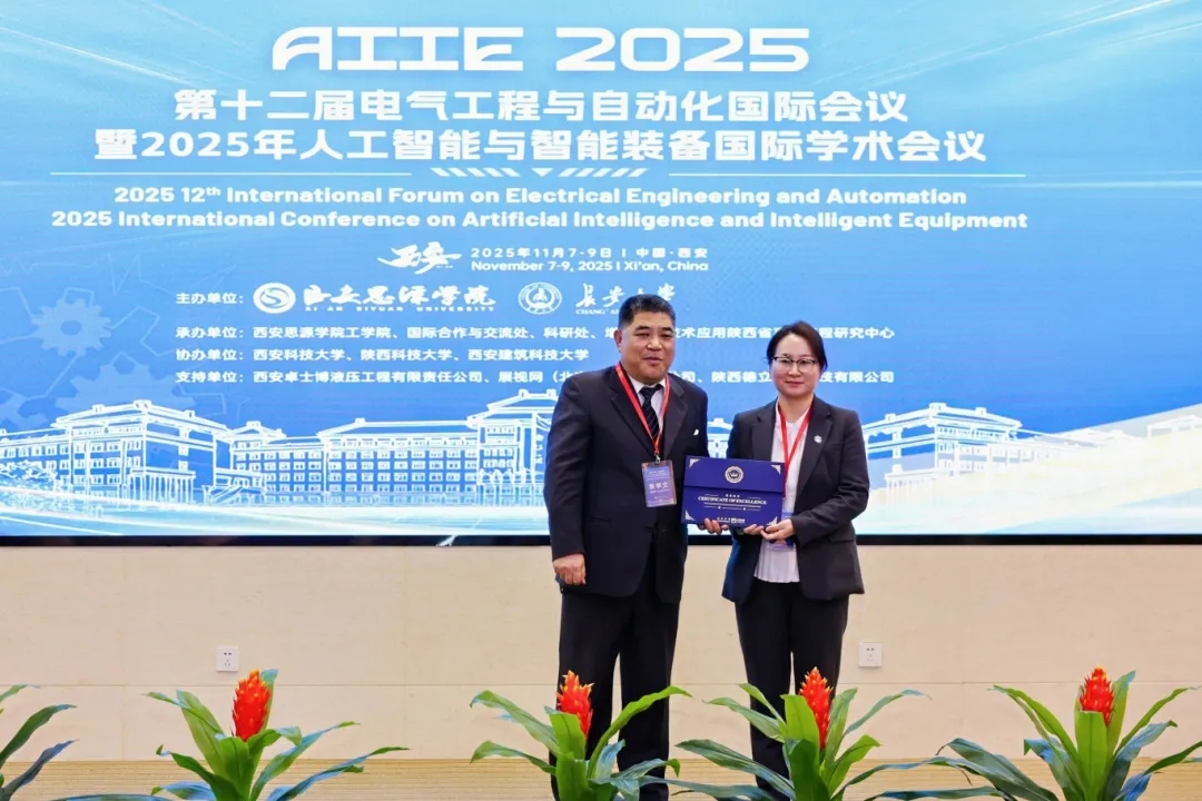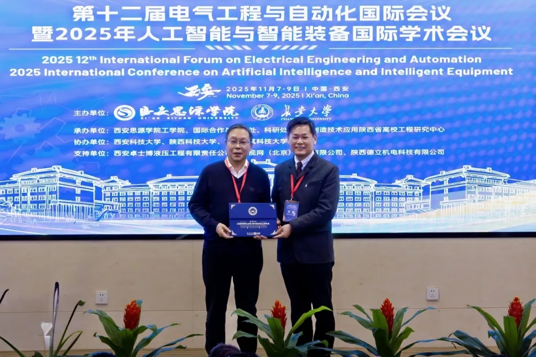 秋染长安,贤才云集。2025年11月7日—9日,第十二届电气工程与自动化国际会议(IFEEA 2025)在西安召开。作为IFEEA 2025的重要分会,由西安思源学院与长安大学共同主办、西安思源学院工学院、国际合作与交流处、科研处、增材制造技术及应用陕西省高校工程研究中心承办的2025年人工智能与智能装备国际学术会议(AIIE 2025)在学校教学报告厅举行,来自国内外知名高校的专家学者、企业研发人员及工程技术人员参加会议,共赴一场聚焦人工智能与智能装备领域前沿科研成果分享与交流、赋能学术创新和产业应用的学术盛宴。
