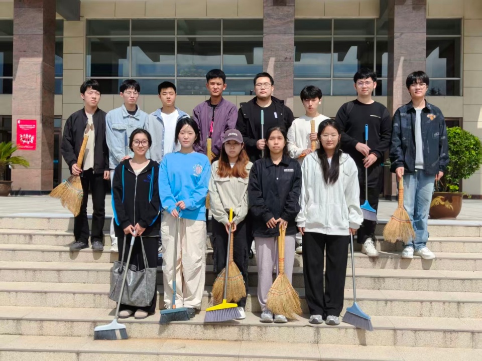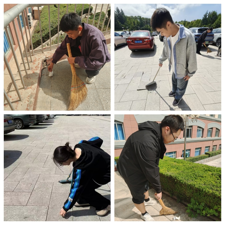 在清扫过程中,同学们分工有序、协作高效,手持清洁工具对中心楼前步道、绿化带等区域展开全面清理。大家精神饱满、细致认真,以实际行动诠释了“校园是我家”的主人翁意识。