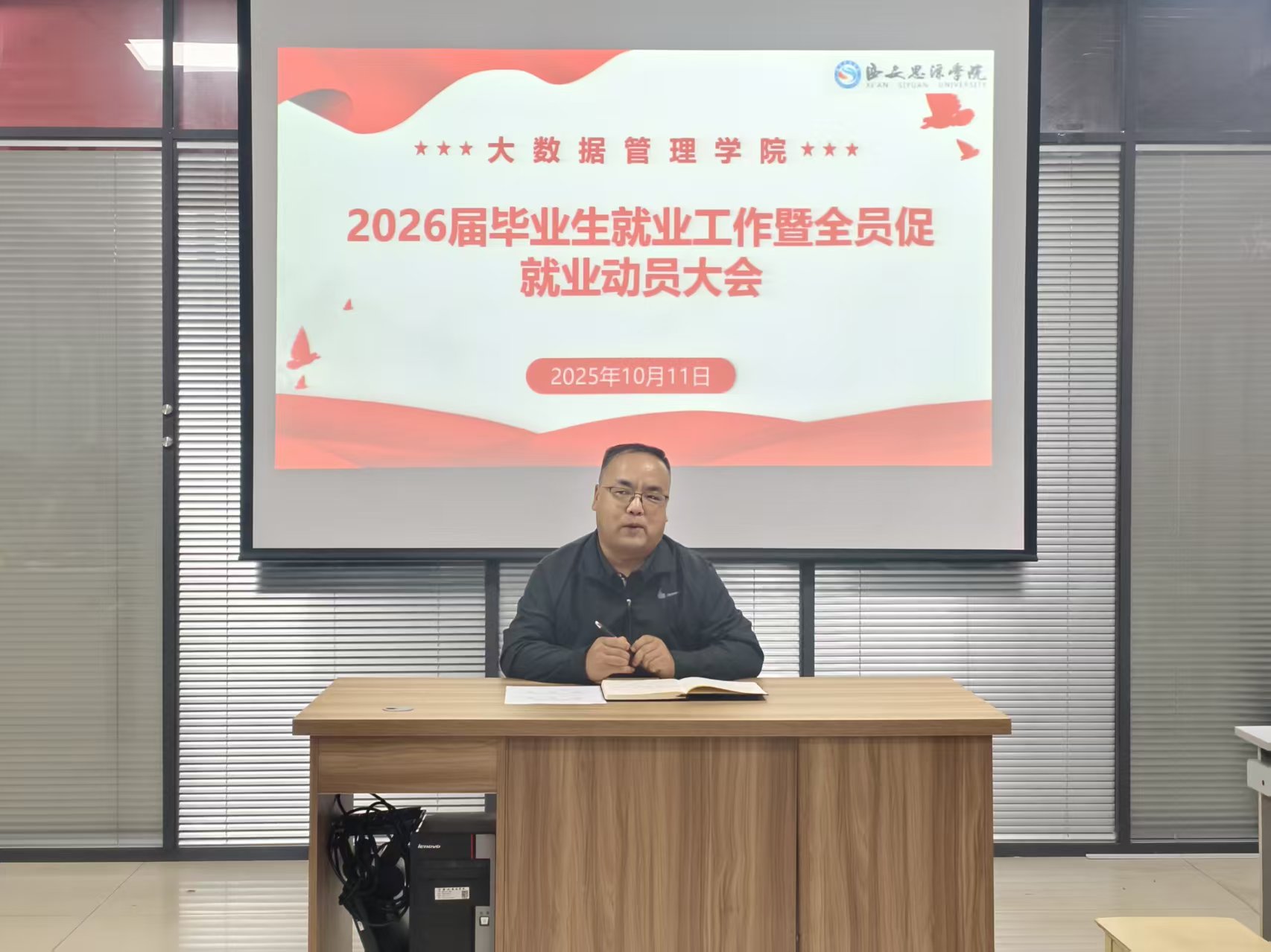 为全面贯彻党的二十届三中全会及全国教育大会精神,落实党中央、国务院关于高校毕业生就业创业工作的决策部署、陕西省教育厅关于 2026 届毕业生就业工作要求,根据《西安思源学院2026届毕业生就业总体方案》通知并结合本院实际情况,2025年10月11日下午,大数据管理学院在综合楼305会议室召开2026届毕业生就业工作暨全员促就业动员大会。院长彭彬战、学管副院长史军锋、教学副院长张菊玲、科研副院长淡梅华出席会议并发言,毕业班辅导员及全体教职工参会。