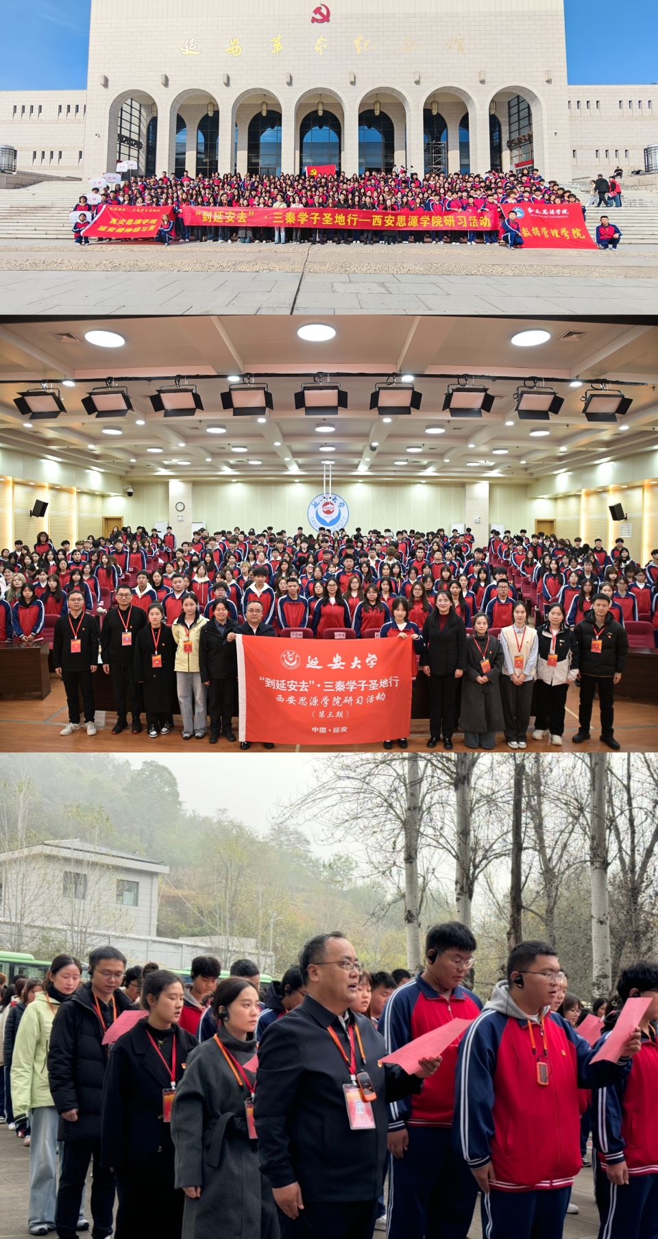 为深入贯彻习近平总书记关于“延安精神是党的宝贵精神财富,要代代传承下去”的重要指示精神,充分发挥延安革命圣地红色资源的育人功能,2025年10月25日至26日,西安思源学院大数据管理学院组织三百余名师生开展“到延安去”?三秦学子圣地行红色实践教育活动。全体师生循着先辈足迹探访革命旧址,在实地感悟中触摸历史温度,于沉浸式学习中凝聚奋进力量,完成了一次深刻的精神淬炼与思想升华。