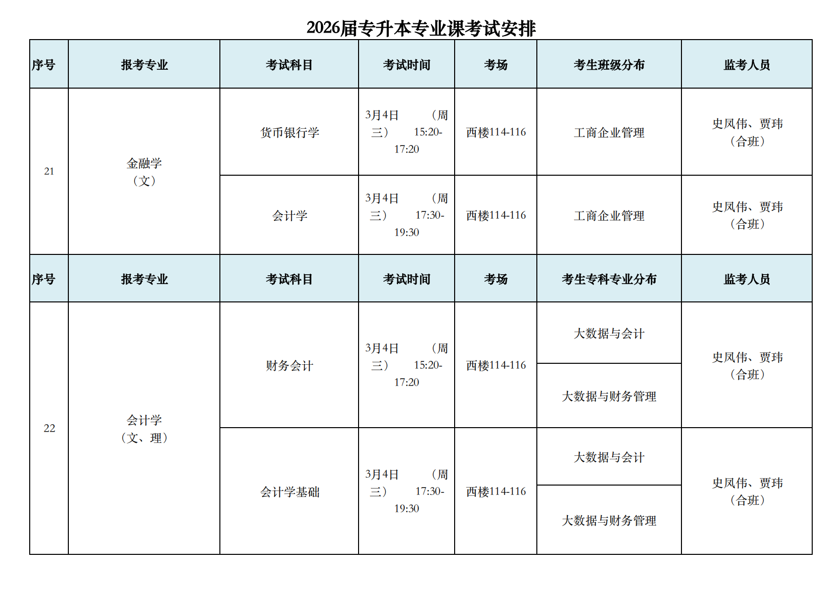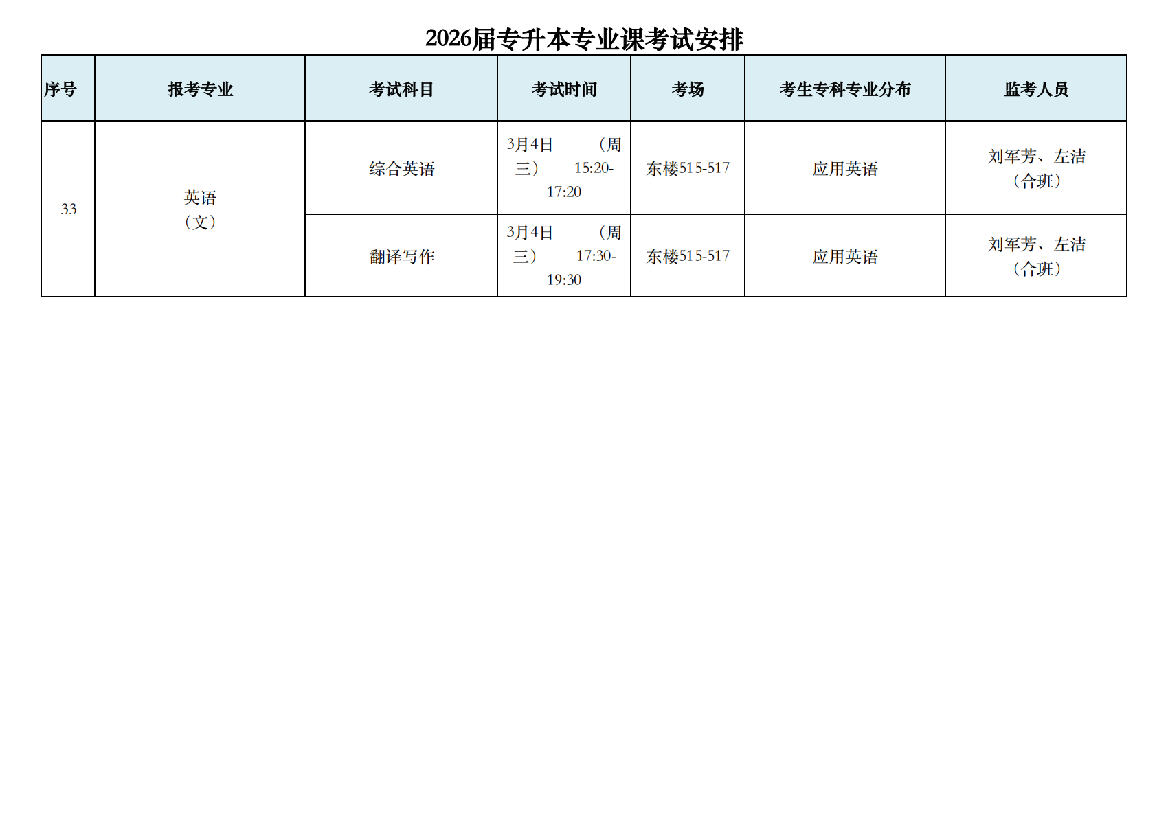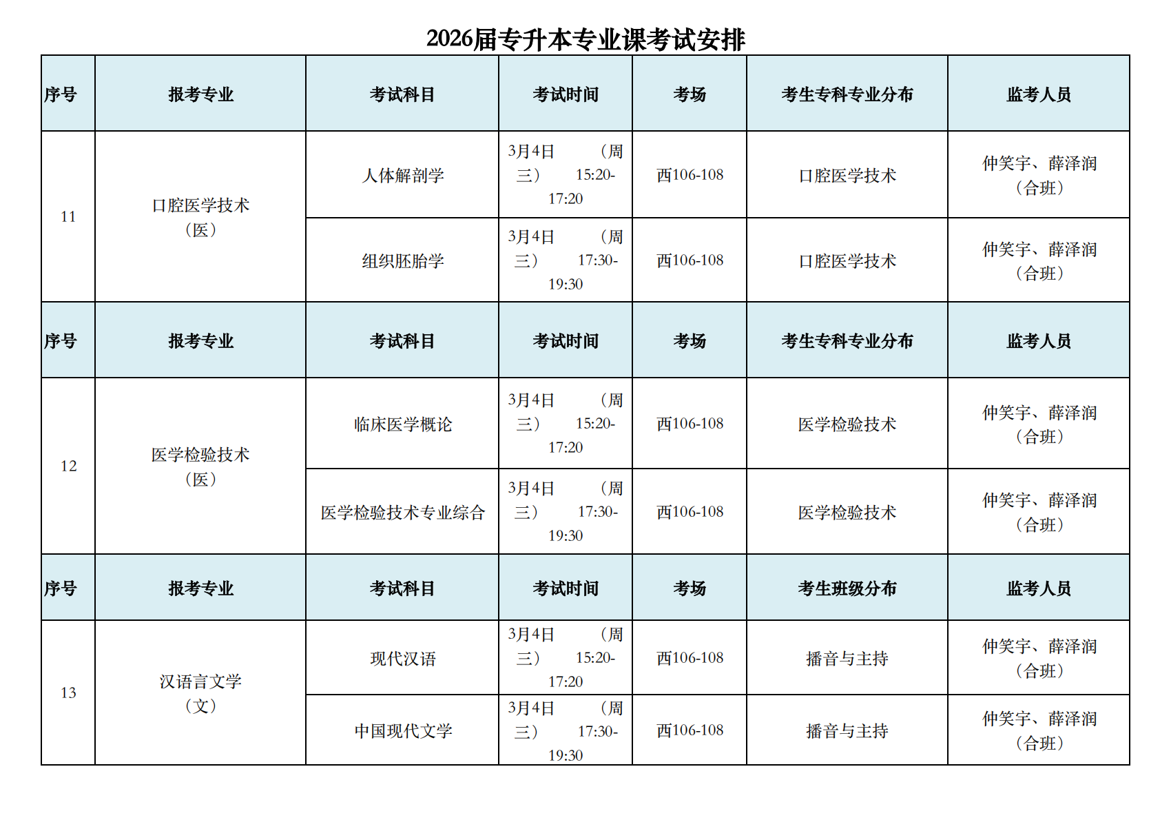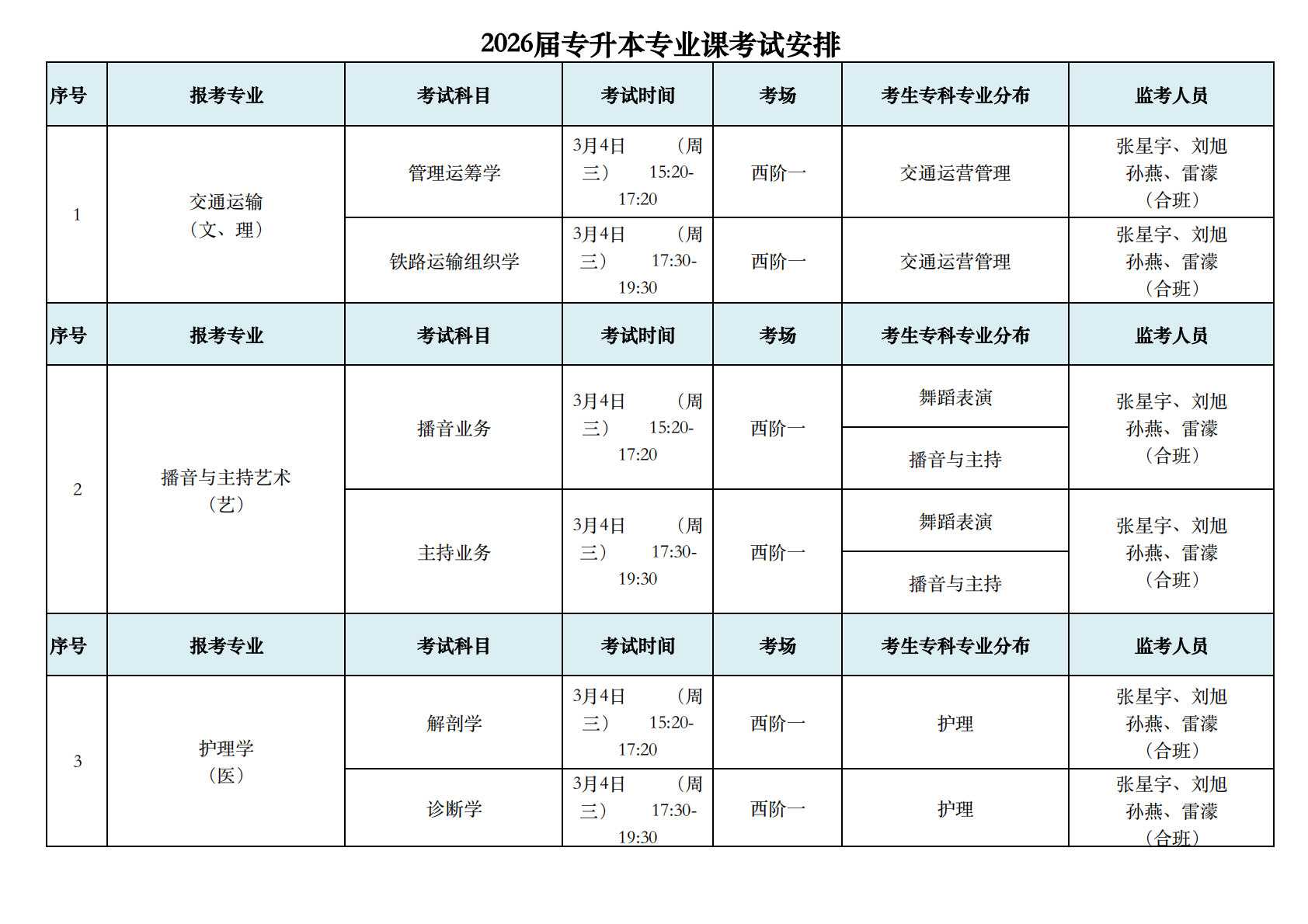2026届专升本专业课考试安排