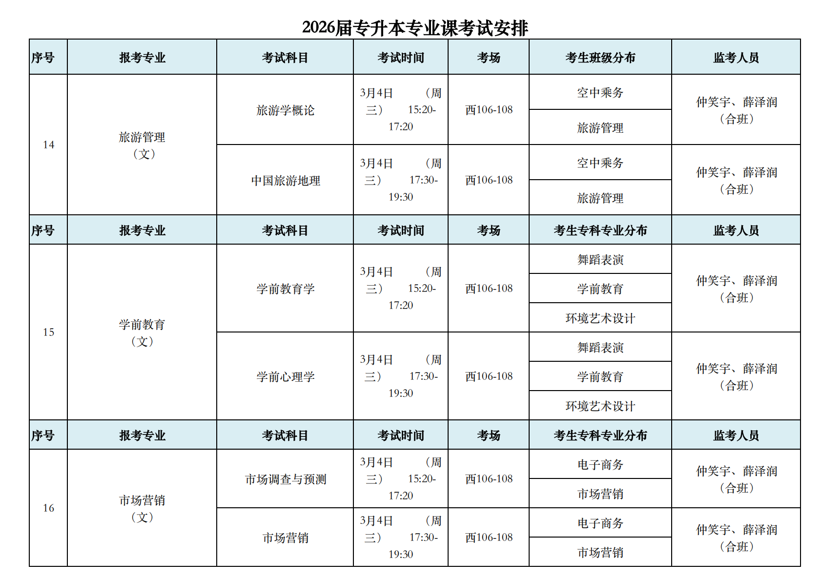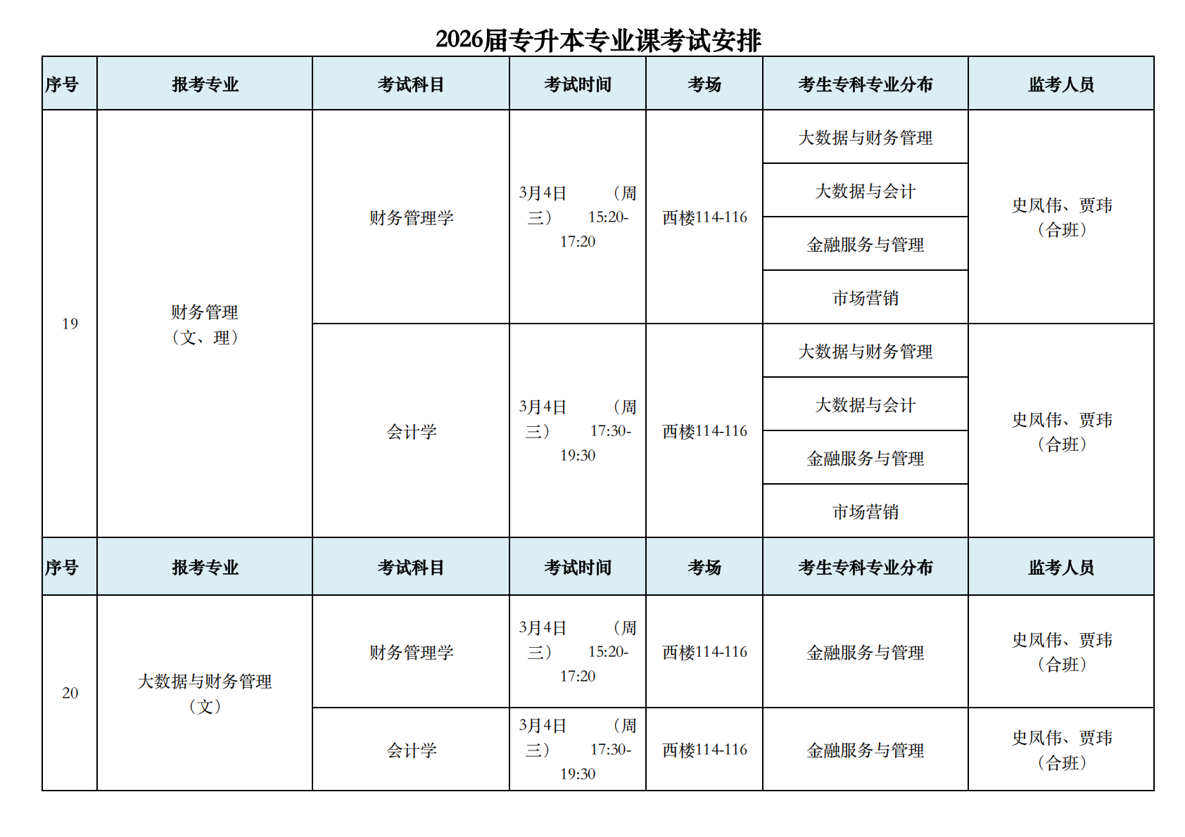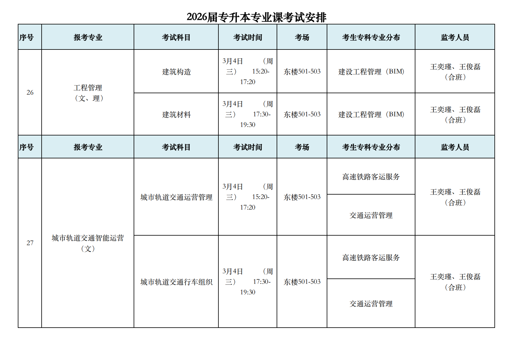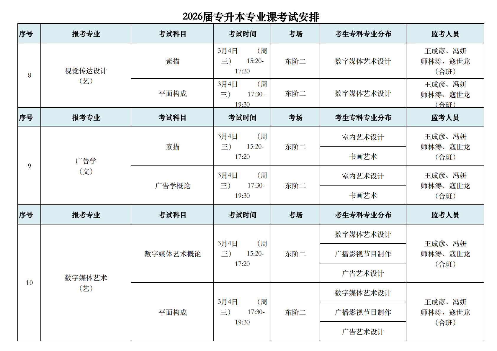 2026届专升本专业课考试安排
