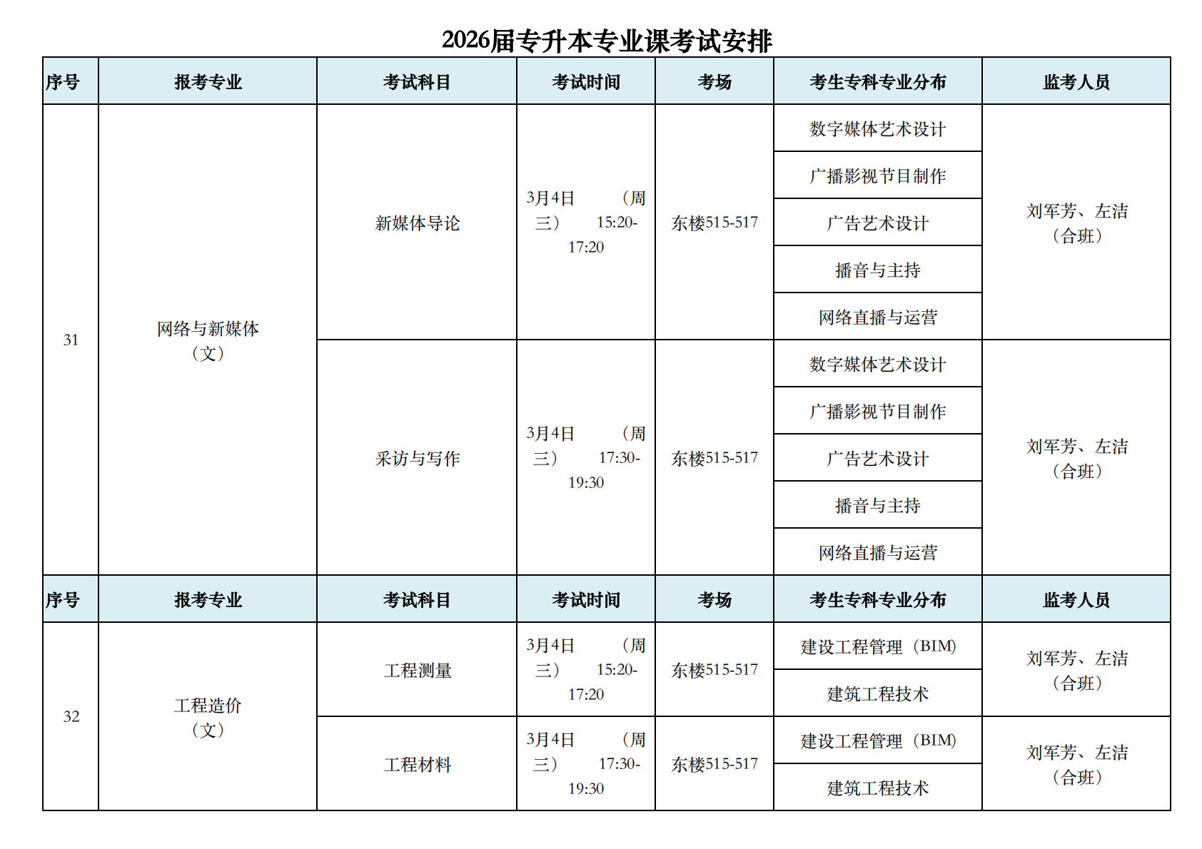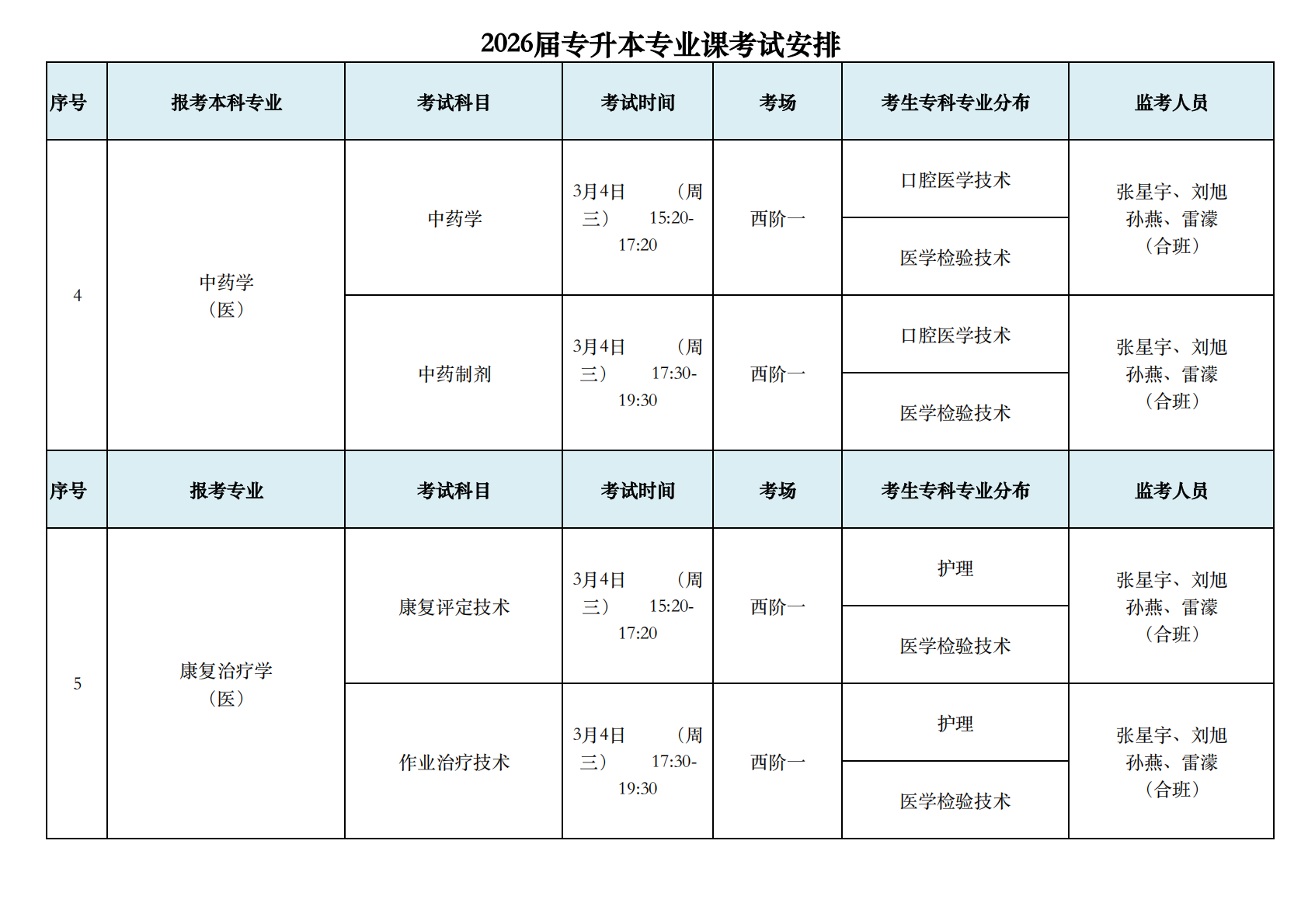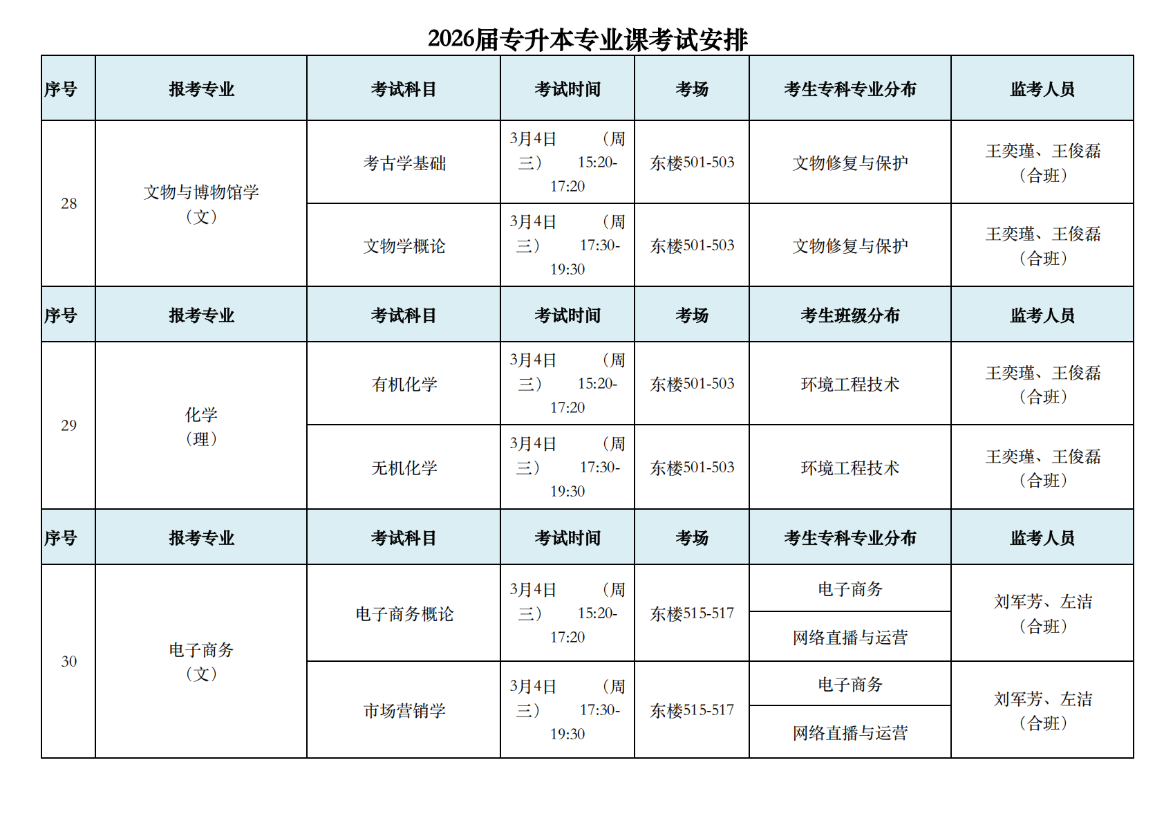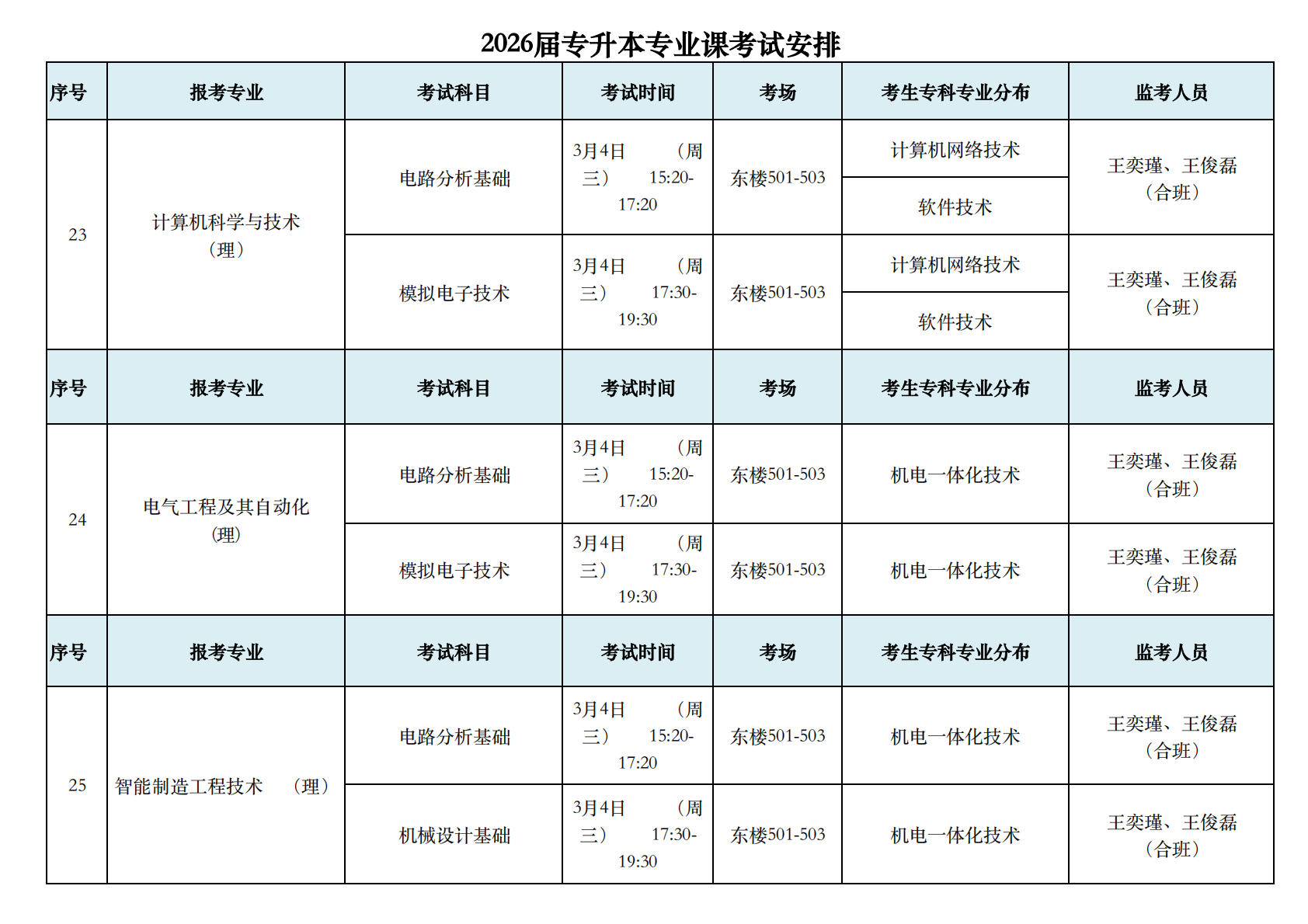 2026届专升本专业课考试安排